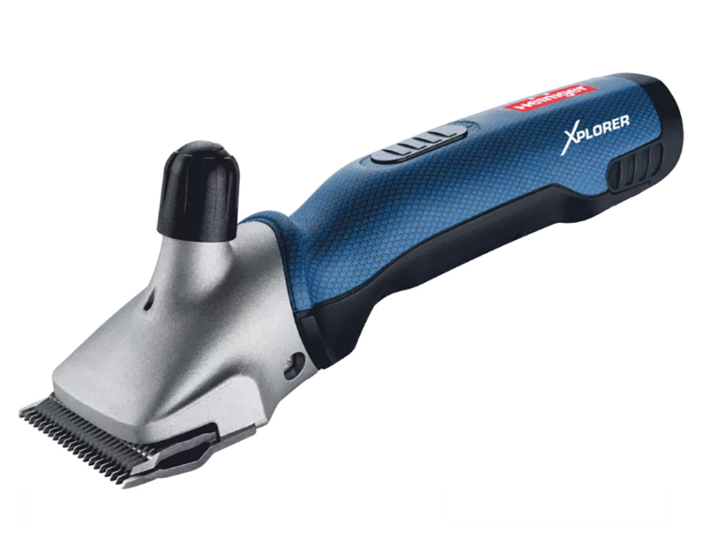 La esquiladora Xplorer está equipada con tecnología de batería de ión de litio. Esto permite hasta dos horas de tiempo de recorte inalámbrico. Al no tener cable aumenta la flexibilidad y la portabilidad de la experiencia de recorte. Esta recortadora de la serie X es muy potente, ergonómica y silenciosa. Cuenta con un potente motor para cortar pelo de ganado y caballos rápidamente y sin ningún esfuerzo. A través del exclusivo engranaje de doble diente, la potencia se transmite de manera óptima desde el motor al cabezal de recorte. La práctica pantalla LED en la unidad del cargador indica el nivel de carga actual de la batería