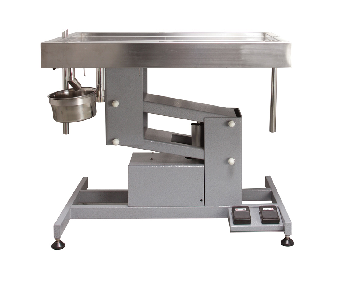 Esta mesa cuenta con un mecanismo de elevación eléctrica, que regula su altura entre los 52 y 101 cms. Sus medidas son 120cms x 60 cms. Toda la superficie es de acero inoxidable de alta calidad. Es una mesa robusta super estable. Cuenta con una cubeta de acero inoxidable a un lado de la superficie de drenaje. Tieene un soporte de 110 cms. de alto para colgar materiales de posicion a ambos lados de la mesa.