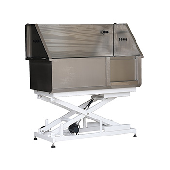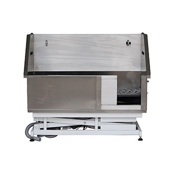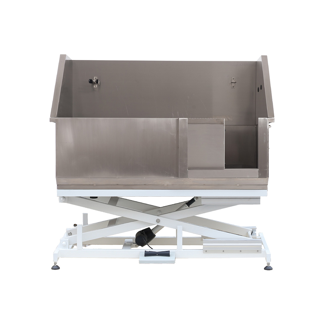 Bañera con sistema eléctrico de elevación en acero inoxidable de gran terminación con salpicaderas. Su construcción sólida es de preciso pulido que asegura una larga vida útil. Es ideal para espacios reducidos en Peluquerías & Veterinarias. Está preparada para el montaje de los comandos y soporte de fijación del animal. Sus medidas son 127 x 67 x 140 cms.