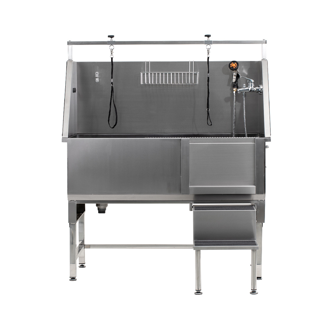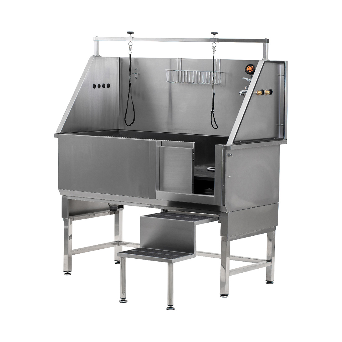 La bañera profesional todo en uno para mascotas está diseñada para cumplir con los más altos estándares de funcionalidad, durabilidad y facilidad de uso para profesionales del cuidado de mascotas. Esta solución integral incluye todas las características y accesorios esenciales para brindar una experiencia de baño superior a mascotas de todos los tamaños. Características principales: Juego completo de accesorios de aseo incluido Construcción robusta de acero inoxidable 304 de 1,2 mm Puerta corrediza para fácil acceso Rampa retráctil para subir y bajar con manos libre Paneles de protección contra salpicaduras de tres lados Mide 128 cm por 67 cm con una profundidad de 38 cm