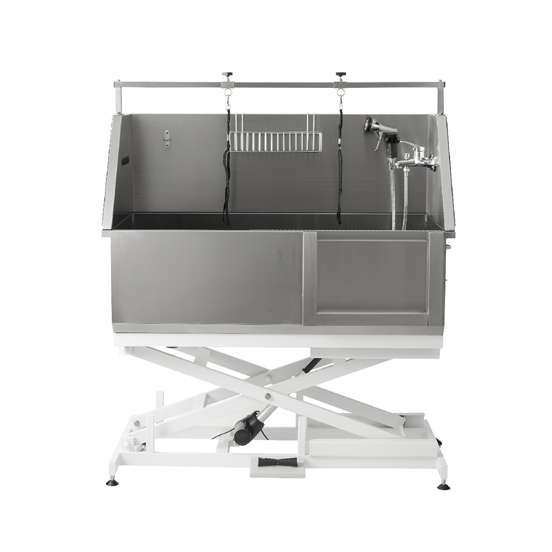 La bañera profesional todo en uno para mascotas está diseñada para cumplir con los más altos estándares de funcionalidad, durabilidad y facilidad de uso para profesionales del cuidado de mascotas. Esta solución integral incluye todas las características y accesorios esenciales para brindar una experiencia de baño superior a mascotas de todos los tamaños. Características principales: Juego completo de accesorios de aseo incluido Construcción robusta de acero inoxidable 304 de 1,2 mm Puerta corrediza para fácil acceso Paneles de protección contra salpicaduras de tres lados Sistema de elevación eléctrico con capacidad de 100 kg Mide 128 cm por 67 cm con una profundidad de 38 cm Pedales impermeables y actuador Linak para un rendimiento confiable