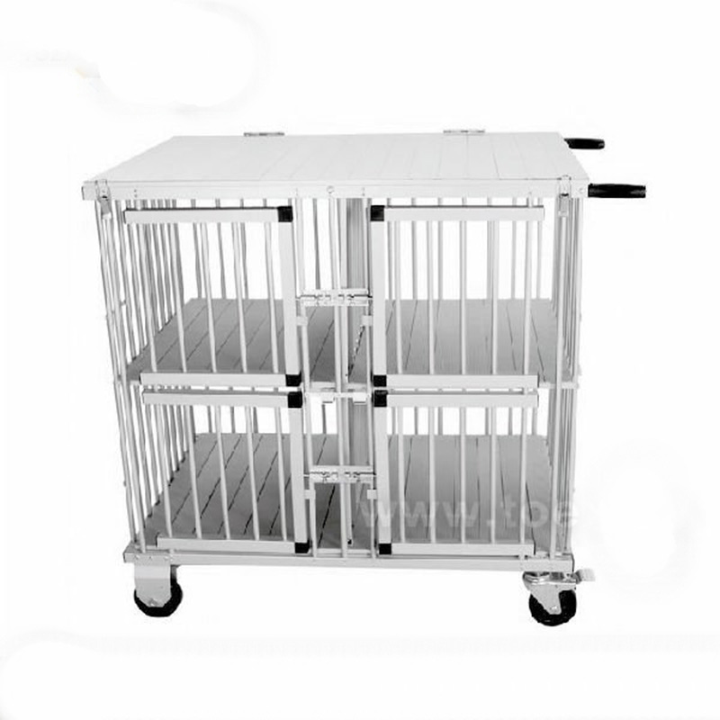 Jaula en aluminio anodizado con paredes sólidas de excelente terminación. Su marco de alumio es duradero, fuerte, ligero y fácil de limpiar. Cuenta con ruedas de 15cms. Puede ser utilizado para 1, 2, 3 o 4 perros al mismo tiempo. Es de fácil transporte, ya que es totalmente desarmable para poder ser transportado en cualquier vehículo. Sus medidas son 93 x 65 x 80 cms. Sus colores disponibles son Rosa o Azul.