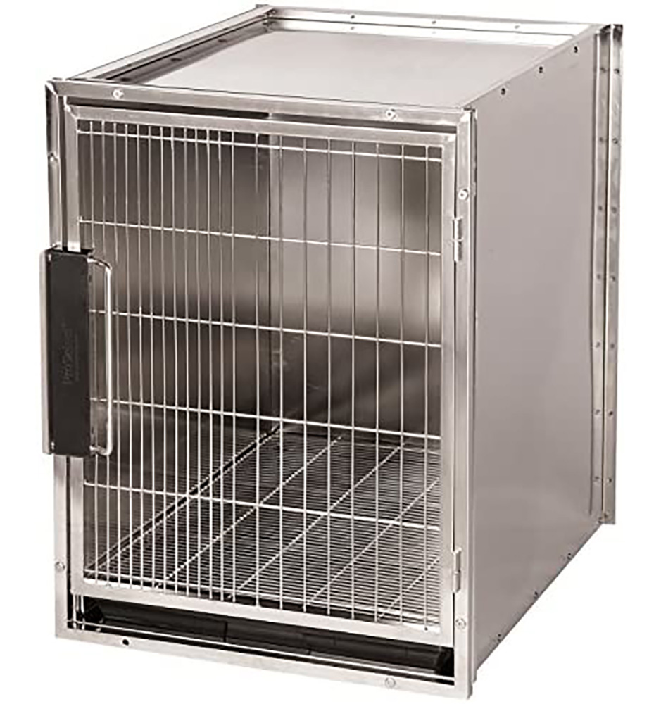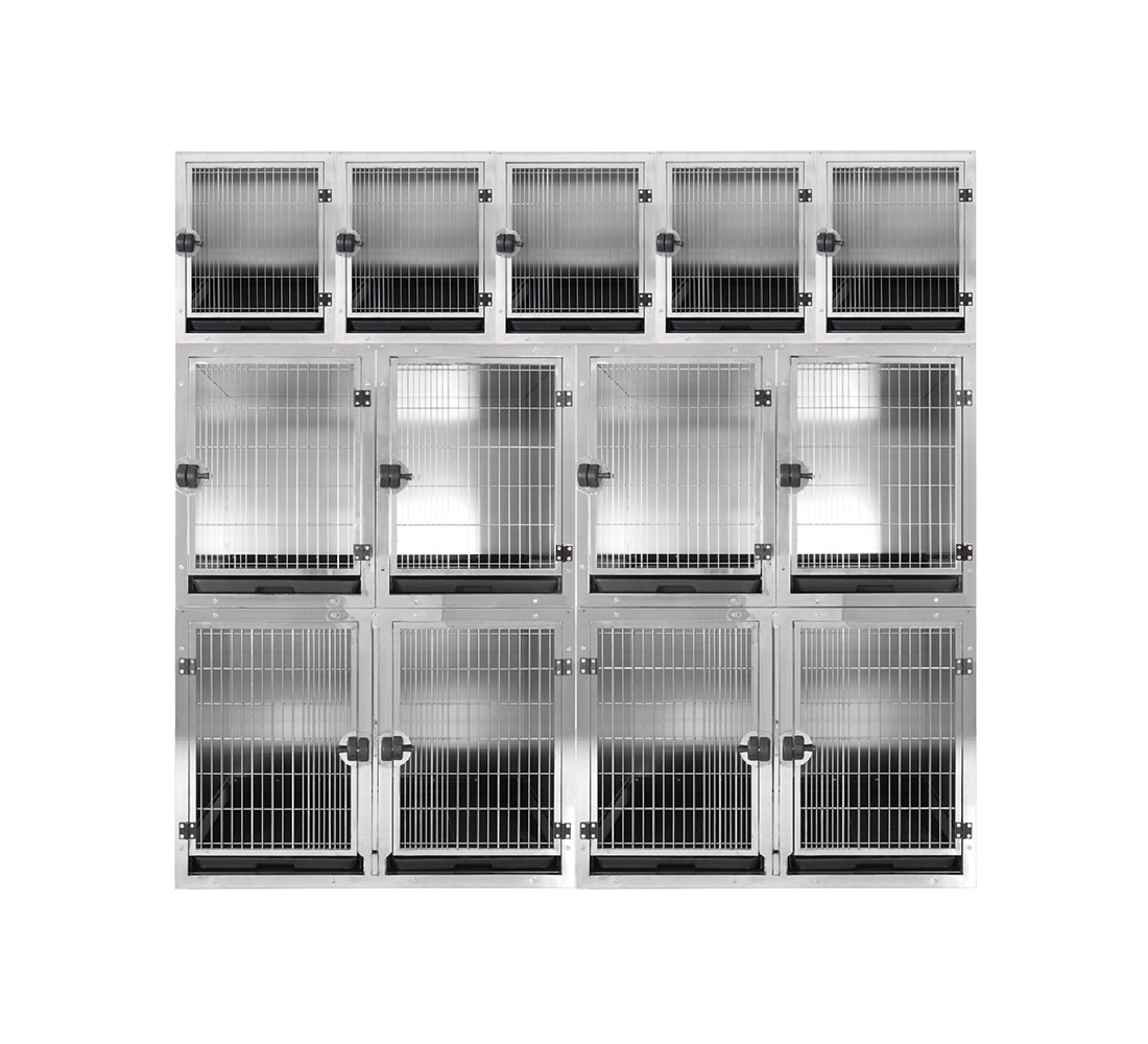 Jaula en acero inoxidable con paredes sólidas de excelente terminación. Viene disenado para brindar seguridad garantizado en durabilidad y resistencia del producto. Cuenta con un sistema de cierre automático de fácil operación. Incluye redilla de piso sólida y extraible. Viene en 3 medidas: - 1 módulo de 2 caniles grandes con separador central (110x66x80 cms.) - 1 canil grande (55x66x80 cms.) - 1 canil pequeño (40x50x56 cms.)