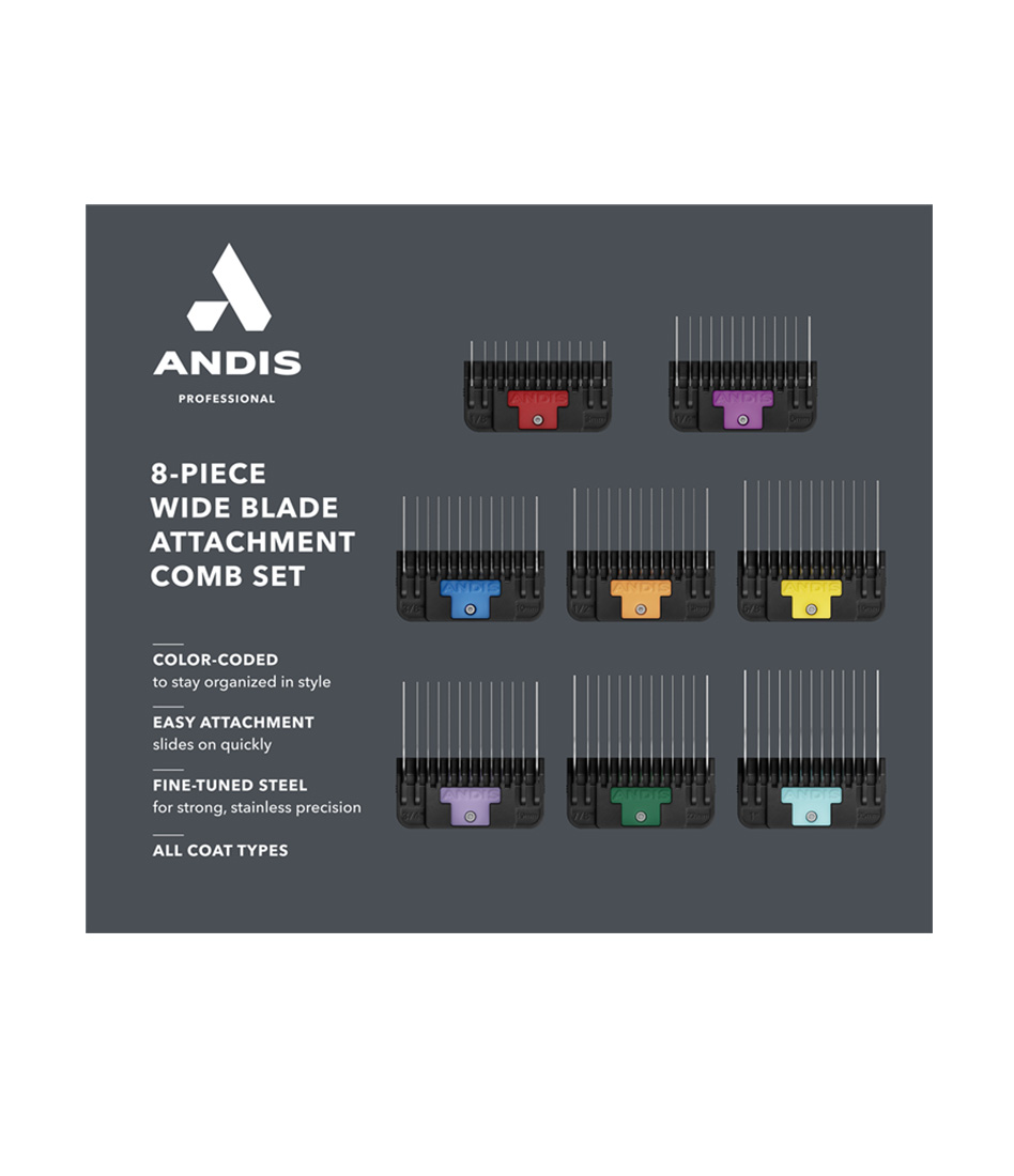 Juego de sobre peines Andis Wide metálicos 8 piezas