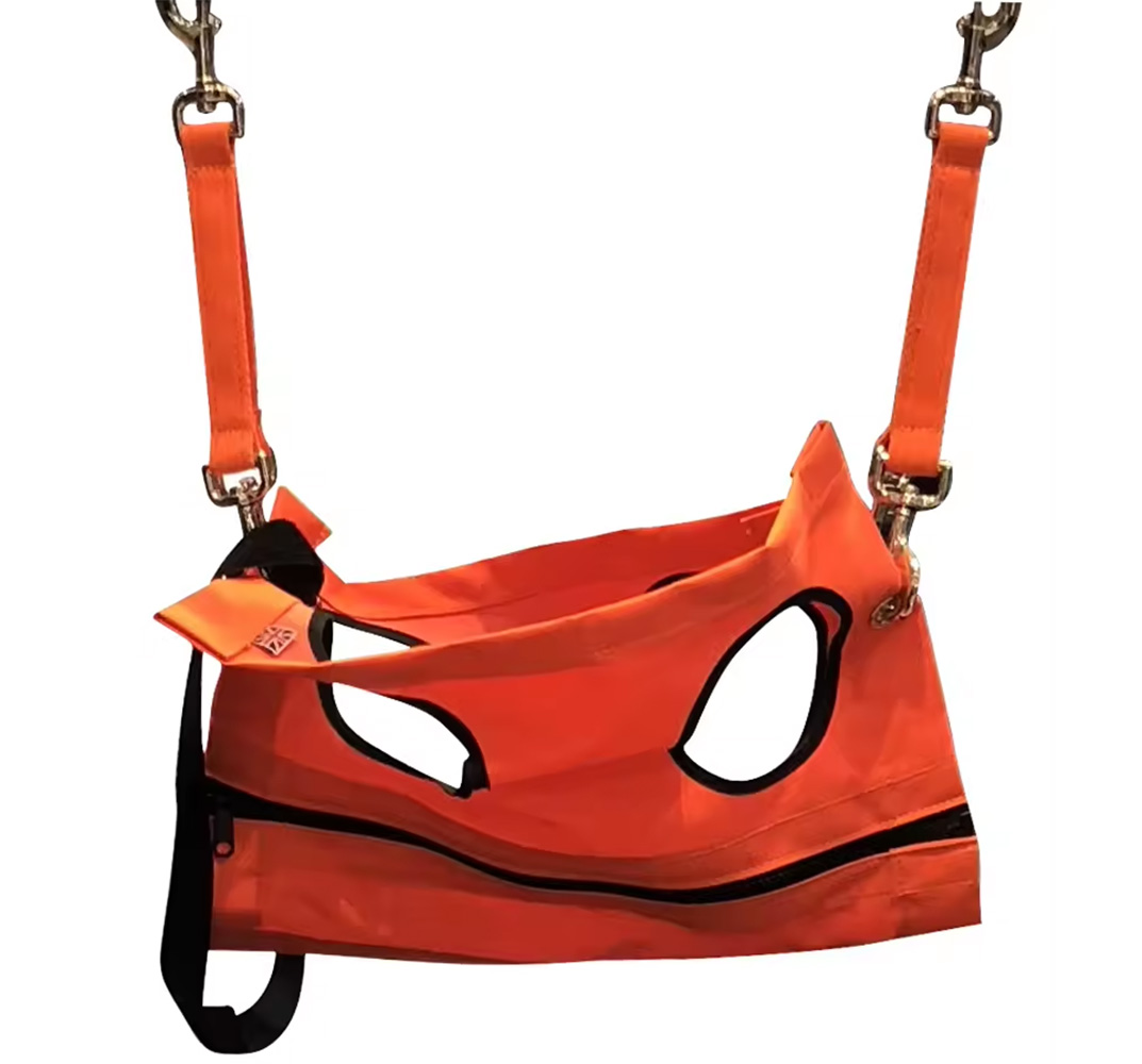Mide 22 xx16 ”(55cm x 40,5 cm), es bueno para la mayoría de las especies medianas y pequeñas. Dos bandas ajustables de longitud fuerte incluidas para la adaptación de altura del colgante. Ancho ajustable a 4 ”(10cm) mediante la cremallera/Apertura de la correa central para adaptarse a diferentes formas. Solo tienes que colocar las patas del perro en agujeros, envolver alrededor y usar los ganchos para colgar. Puede soportar hasta 15kg.