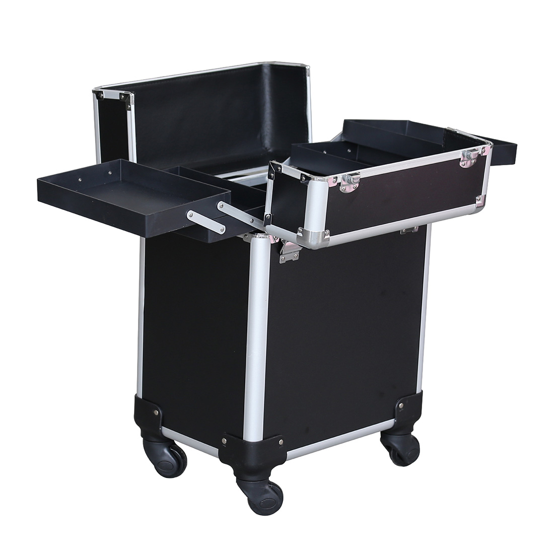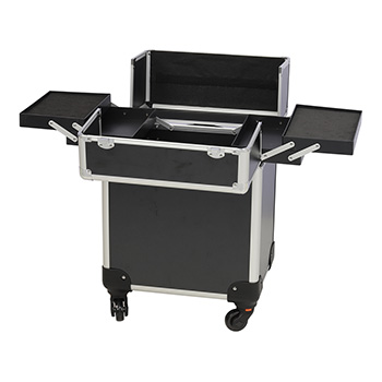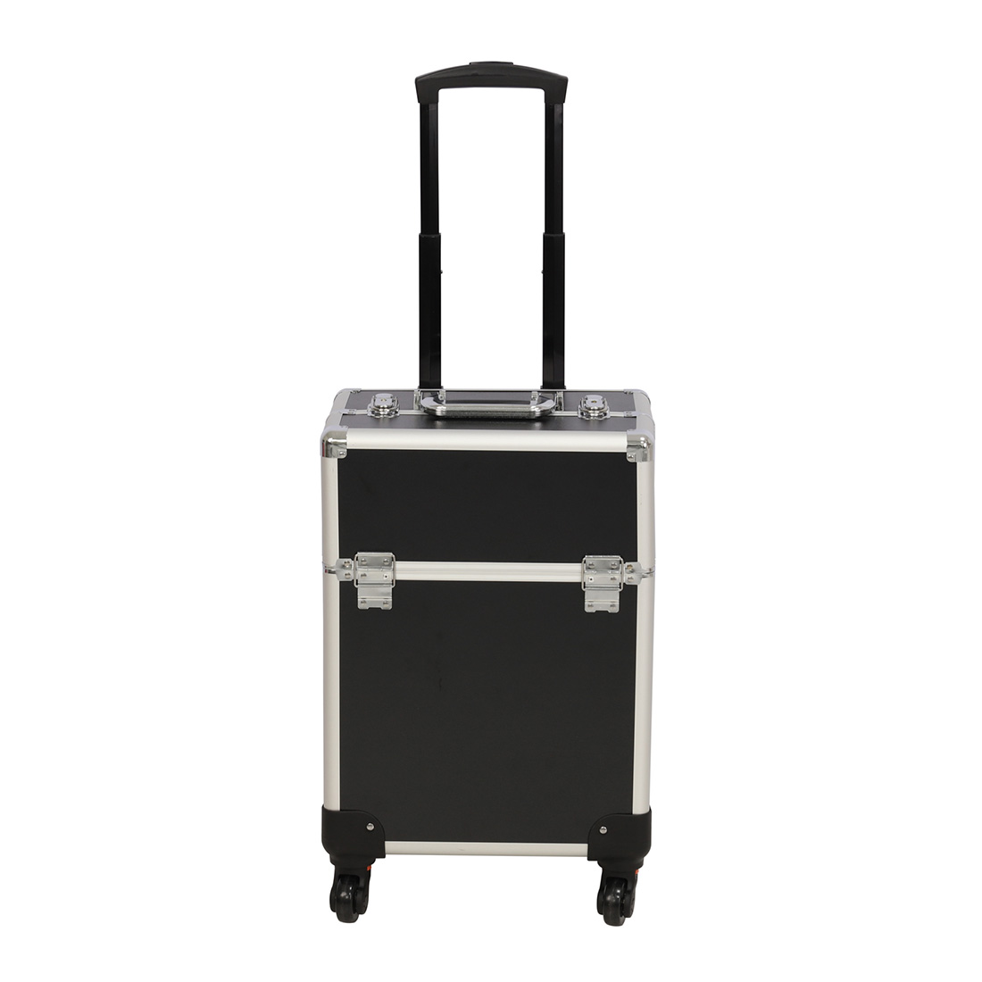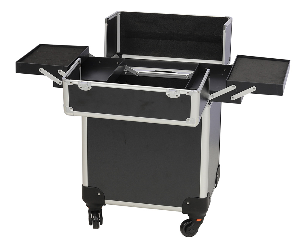 Estuche de herramientas de tamaño mediano, adecuado para peluqueros móviles o competitivos para organizar las herramientas de aseo a mano. Viene con un mango telescópico y 4 ruedas giratorias que proporcionan un movimiento suave y que ahorra trabajo en todas las direcciones. Tamaño: 340 mm (largo) x 240 mm (ancho) x 515 mm (alto) Bandejas recolectoras y bolsillos organizadores en el interior.