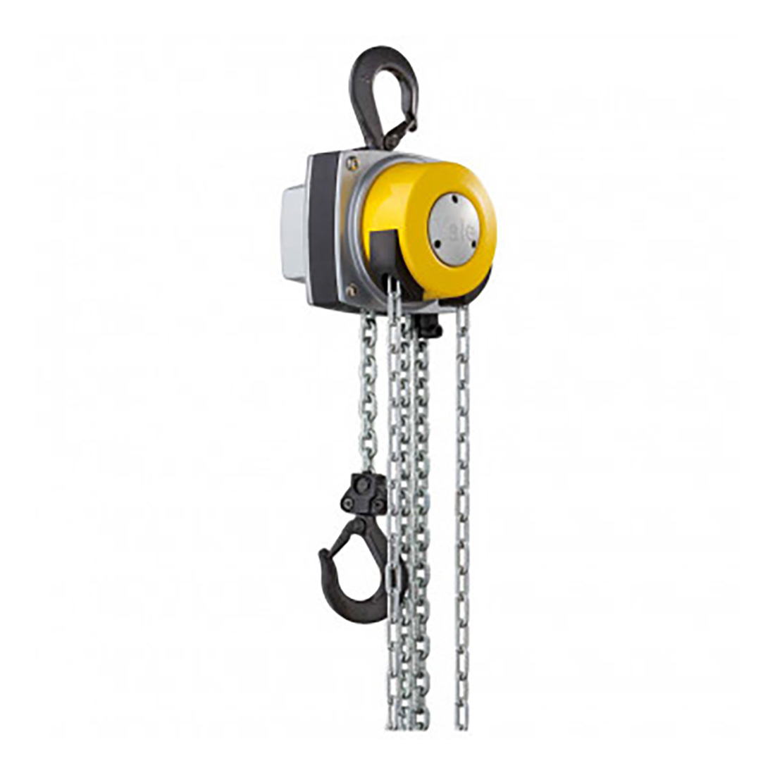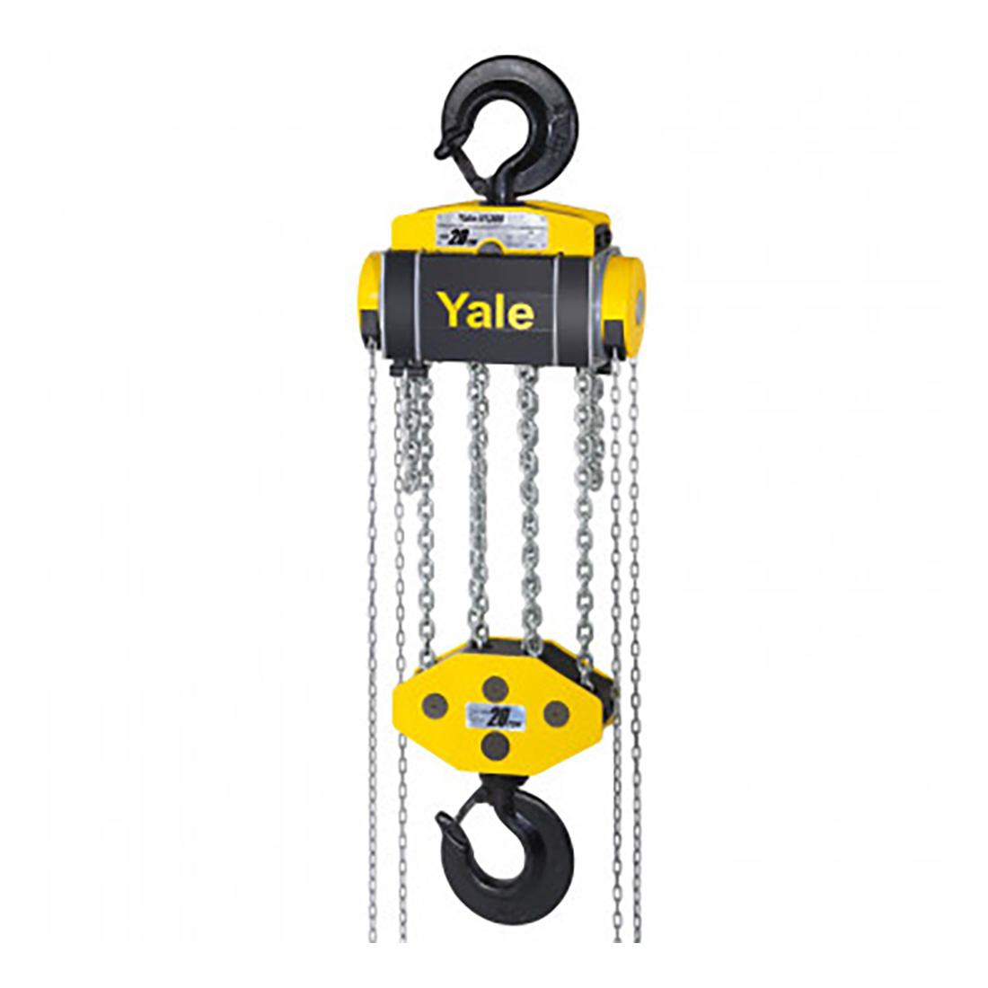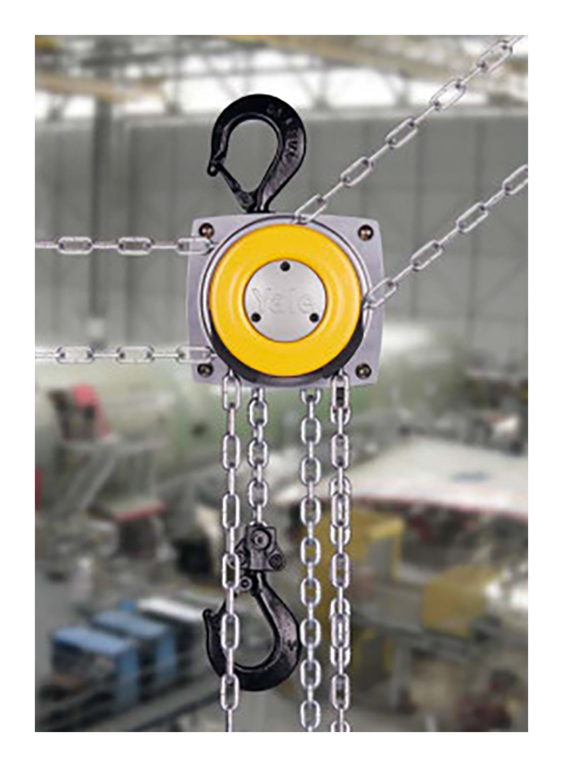 Sistema de mando giratorio 360º que permite al operario trabajar prácticamente desde cualquier posición, incluso encima de la carga. El Yalelift puede ser manejado incluso a un lado de la carga lo que también posibilita usar el polipasto para tirar o tensionar. Sistema de freno automático de doble trinquete y protegido contra la corrosión. Protección de los componentes internos incluso en condiciones extremas de trabajo debido a la guía de cadena y engranaje casi totalmente cerrado. Polea de carga endurecida con cuatro ranuras mecanizados asegura un movimiento preciso de la cadena. Cadena de eslabones de alta resistencia, zincada, según normas y reglamentaciones nacionales e internacionales. Los ganchos de suspensión y de carga que se abren en caso de sobrecarga en vez de romperse, están fabricados en acero de alta resistencia. Los ganchos giran 360º y están provistos de seguros o lengüetas.