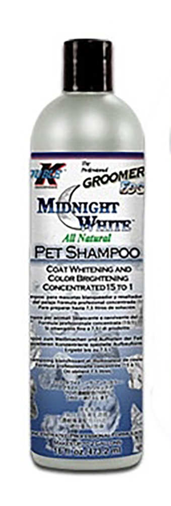 El shampoo Midnight White de 16oz. limpia, acondiciona e ilumina las batas blancas y mejora las capas de color. Elimina las manchas y los olores. Deja el cabello brillante y saludable, con un aroma fresco y limpio. Cuenta con un pH equilibrado especialmente para los animales. Su fórmula única con aloe vera, pantenol y vitamina E, limpia suavemente, manteniendo el equilibrio y la humedad natural de la piel y el cabello. Es ideal para utilizarlo en perros, gatos y todos los animales de compania o de granja. Su concentración es 15 a 1.