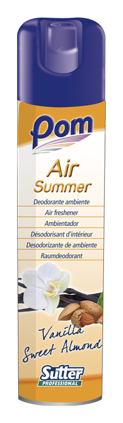 Ambientador aerosol Efecto desodorante de larga duración Perfume dulce (Vanilla Sweet Almond) No perjudica la capa de ozono Ambientador con fragancia de larga duración dulce y veraniega que deja los ambientes agradablemente perfumados durante mucho tiempo. Listo para usar. Agitar bien antes de usar. Nebulizar en el ambiente durante algunos segundos manteniendo el aerosol vertical.
