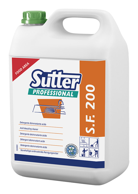 Detergente ácido específico para la eliminación de incrustaciones calcáreas de las superficies. Apto para usarse en ambientes alimentarios (HACCP). Dilución Para residuos ligeros: 3% - 5 % (de 300 ml a 500 ml en 10 l de agua)- Para superficies duras (gres, cerámica, revestimientos), diluirlo al 10% (1 l cada 10 l de agua)- Para desincrustar a fondo: 10% - 15% (de 1 l a 1,5 l en 10 l de agua). Diluir el producto en agua a las concentraciones indicadas. limpiar las superficies. aclarar muy bien.