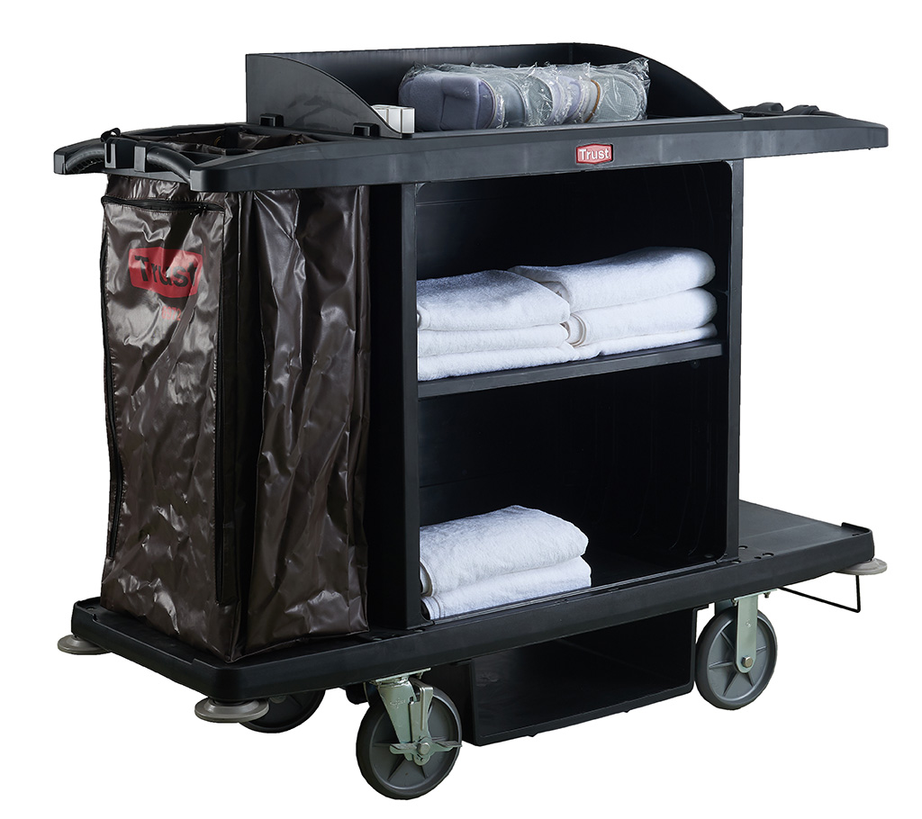 1-Solución completa para el servicio de impieza de Hoteles 2-Costrucción duradera, moldeada con superficie lisa, fácil de limpiar. 3- Las ruedas de 20 cm no dejan marcas. Facilita el movimiento y la maniobra. 4-Asas fáciles de usar y de agarrar que ayudan a maniobrar el carro. 5- Ruedas de protección en las 4 esquinas para protreger la pared y los equipamientos