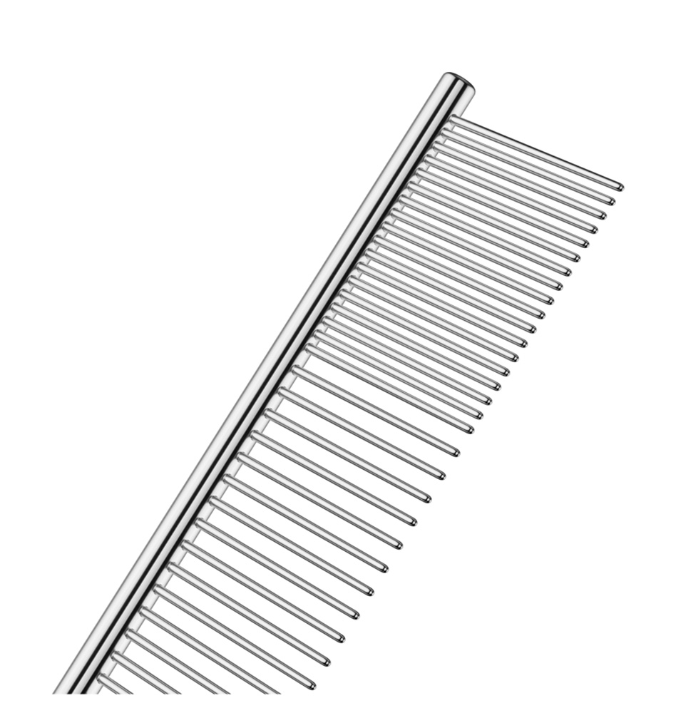 Peine de acero inoxidable de 25 cms. ideal para gatos o todos los tamanos de perros. Elimina los enredos, la suciedad y el cabello suelto.